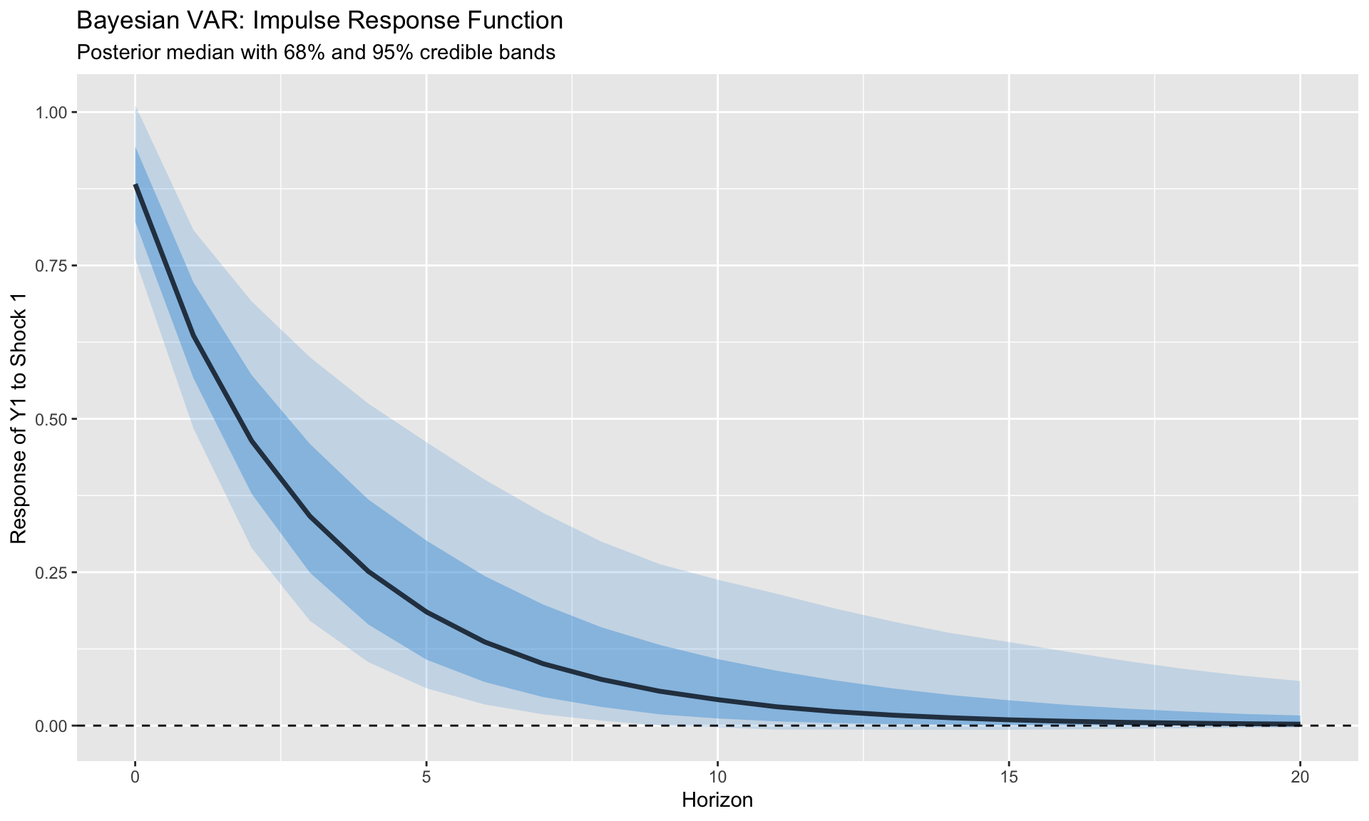 6. **Reporting**: Present posterior median IRFs with 68% and 95% credible bands