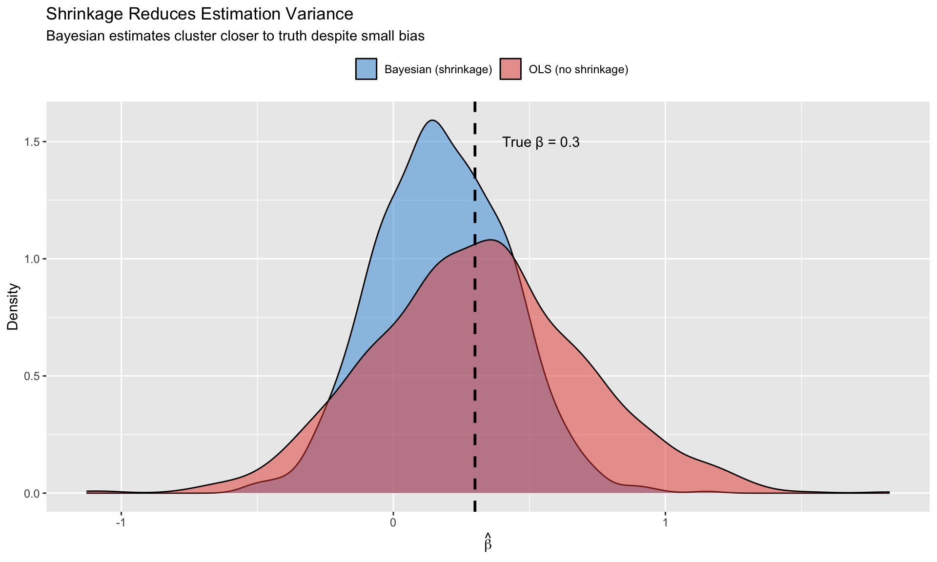 labs(title = "Shrinkage Reduces Estimation Variance",