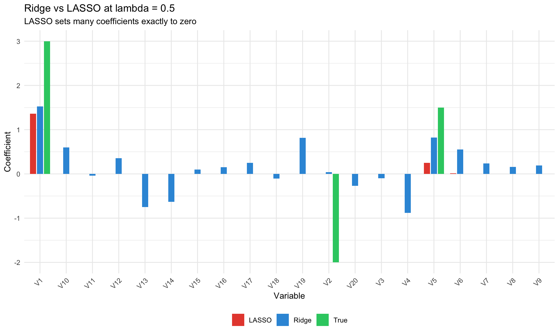 #| fig-cap: "LASSO vs Ridge: sparsity"