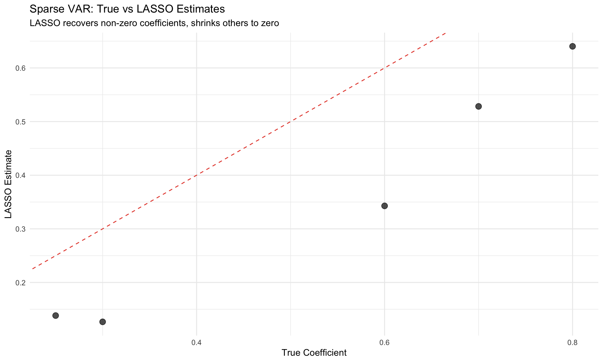 labs(title = "Sparse VAR: True vs LASSO Estimates",